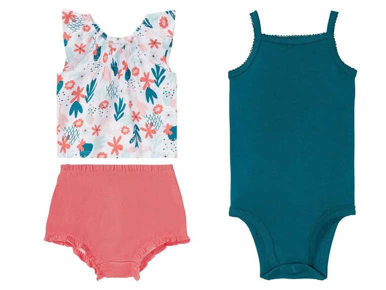 Body with spaghetti straps with crocheted edge and press studs in the crotch for easy removal