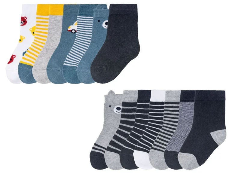 LUPILU® toddler socks boys, 7 pairs, with cottonAvailable in: patterned / gray / navy & patterned / white / yellow / blueFeatures: with cotton✓ 7 pairs✓ Optimal fit thanks to the elastane LYCRA®