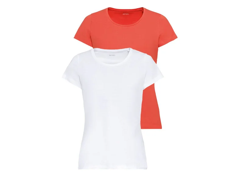 ESMARA® 2 women’s t-shirtsAvailable in: white / coral & blue / navyFeatures: slightly tailored cut✓ Pleasantly cooling and dry wearingcomfort ✓ 2 pieces