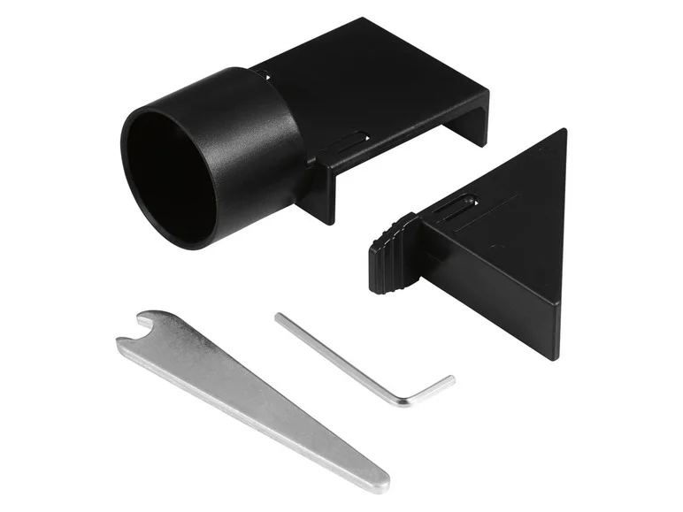 Included accessories: 2 HSS planing knives (pre-assembled), 1 dust extraction adapter and 2 assembly keys
