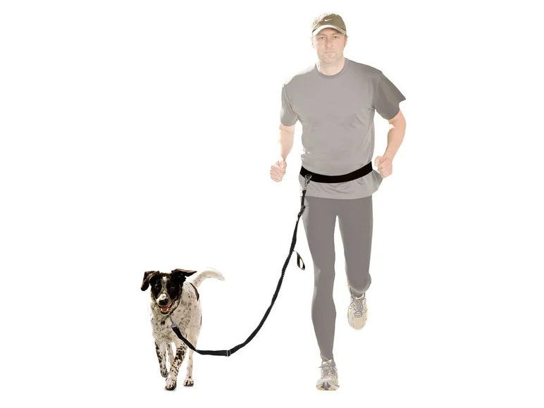 With 2 separate belt pockets for cell phone, drinking bottle and dog treats, for example