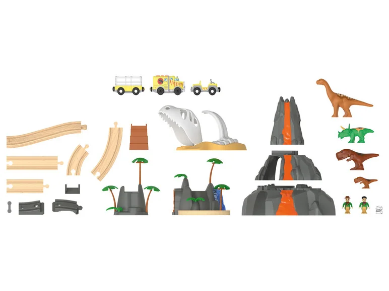 Self-driving, battery-operated expedition truck with dinosaur trailer and forward and reverse function