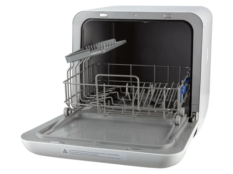 Compact alternative to conventional dishwashers Programmable start time (1-24 hours) LED display for start delay and remaining time Warning light for insufficient salt and rinse aid Detached With cutlery basket Programs