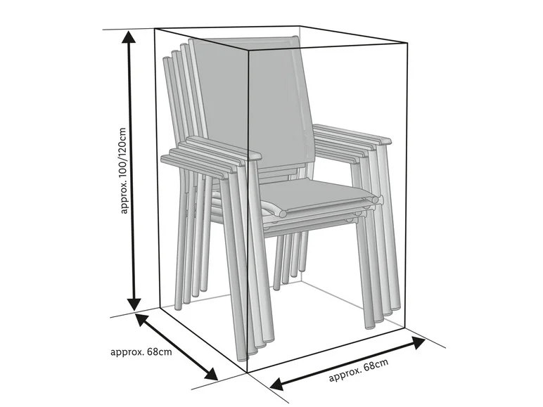 Drawstring for easy and secure attachment compact storage bag with zipper and shoulder strap Stacking armchair 2 covered ventilation openings for optimal air circulation Soft, textile inner lining to protect the furniture Suitable for up to 4 stacking chairs With waterproof PVC coating Tear-proof and UV-stable Reinforced hem with 4 sturdy aluminum eyelets Folding armchair 2 covered ventilation openings for optimal air circulation Soft, textile inner lining to protect the furniture Suitable for up to 4 folding chairs With waterproof PVC coating Tear-proof and UV-stable Reinforced hem with 4 sturdy aluminum eyelets Traffic light umbrellas With a separate fiberglass rod for easy slipping over the cover Soft, textile inner lining With waterproof PVC coating Tear-proof and UV-stable Suitable for traffic light parasols up to approx. 3 m in diameter Reinforced hem with 4 sturdy aluminum eyelets Grills 2 covered ventilation openings for optimal air circulation Ideal protection against dirt, leaves, moisture and solar radiation Made of high quality polyester fabric With waterproof PVC coating Tear-proof and UV-stable Soft inner lining that is gentle on the surface Suitable for gas, charcoal and electric grills Reinforced hem with 8 sturdy aluminum eyelets